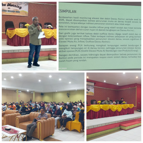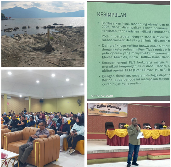 KERINCI DETIKKOMPASNEWS.MY.ID – Manajemen PT Kerinci Merangin Hidro (KMH) akhirnya membedah data teknis guna menjawab spekulasi publik terkait menyusutnya debit air Danau Kerinci. Dalam forum Coffee Morning bersama awak media dan LSM se-Kabupaten Kerinci dan Kota Sungai Penuh di Hotel Mahkota, Kamis (5/2/2026), pihak perusahaan menegaskan bahwa operasional turbin bukan merupakan penyebab utama fenomena tersebut.