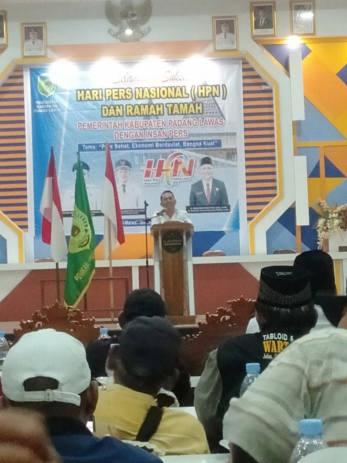 Sambutan Bupati Padang Lawas Putra Mahkota Alam, SE (PMA) mengucapkan selamat Hari Pers Nasional ( HPN) ke-80 tahun 2026 semoga Pers Sehat, Ekonomi Berdaulat, Bangsa Kuat. “Saya mengharap agar insan pers Kab. Padang Lawas selalu mempulikasikan informasi tentang perkembangan kabupaten ini yang akurat dan berimbang”, harap PMA. Menyinggung soal senggol menyenggol tentang pemberitaan baik kepada OPD dan lain-lain, hal ini merupakan bahan evaluasi, masukan untuk+ perbaikan diri dalam penyelenggaraan Pemerintahan di Kab. Padang Lawas ke depannya, begitu juga sebagai atensi buat saya selaku Bupati, ” jurnalis itu jika tidak menyenggol berarti tidur” ungkapnya sambil tertawa kecil yang menunjukkan keakrapan bersama insan pers, sehingga disambut tepuk tangan yang meriah dari insan pers.